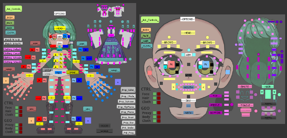 - This rig shares the same base body control setup as Reimu rig, I suggest you download free Reimu rig and try her out first!